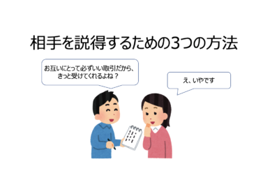 明らかにお互いの得になるはずの取引であるにもかかわらず、それが受け入れられないという状況では、一度自分の説得の仕方を見直すことが重要です。
