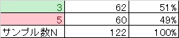 結果的に122サンプルを収集したところ、3/3と5/5の出現数はほぼ半々に収束しました。