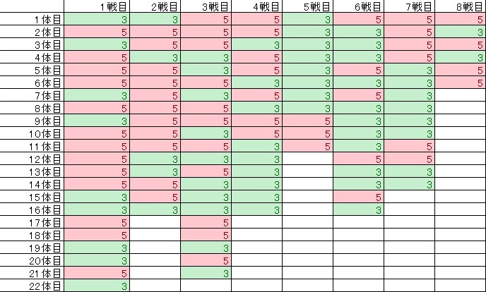 上記の様な検証を8戦程行い、集計した結果がこちらです。