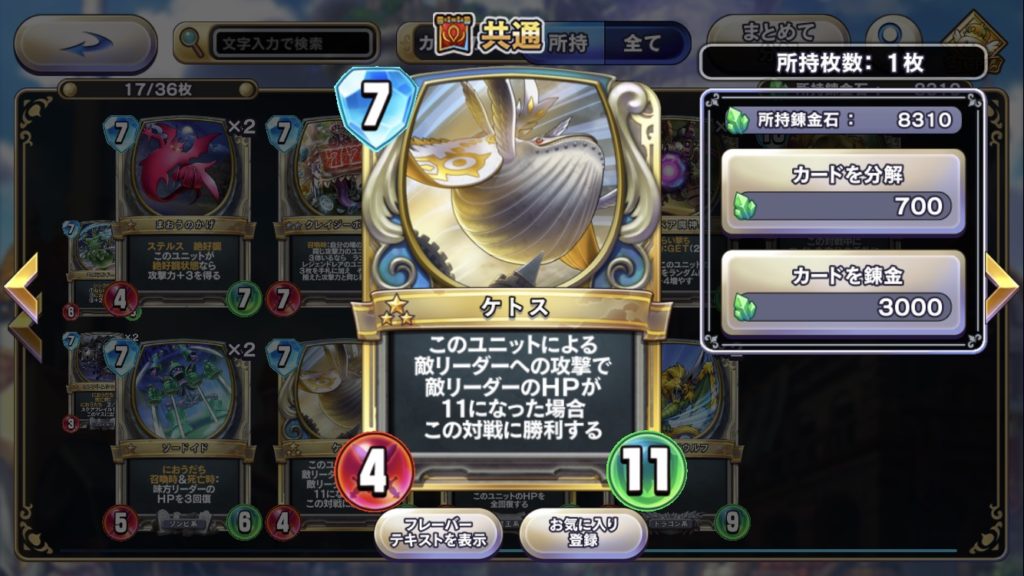 デッキになかったカードを手札加えるほど際限なく攻撃力が上がっていき、コストも下がっていきます。11枚手札に加えると、0コストで攻撃力11の2回攻撃という超高火力のユニットになります。またHPも8とロトのレベル3でも一撃死しないので非常に耐久力があります。0コストで召喚できれば、同時に他のアクションも取れるため、仁王立ちやブロックによってさらに生き残りやすくすることも出来ます。